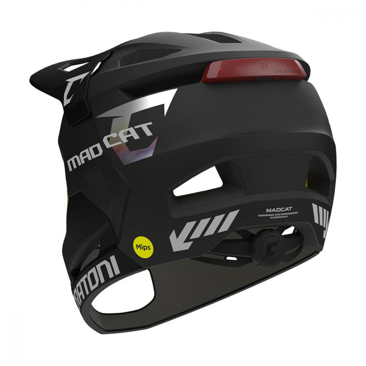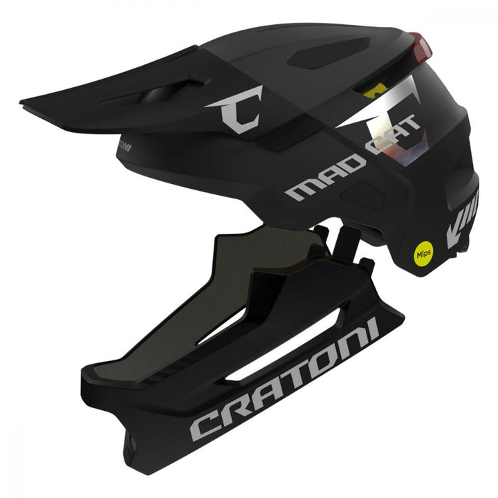 CRATONI MadCat MIPS Fullface Kinderhelm – Black Matt, Größe S-M (49–56 cm) – mit abnehmbarem Kinnbügel, Rücklicht & MIPS-Technologie