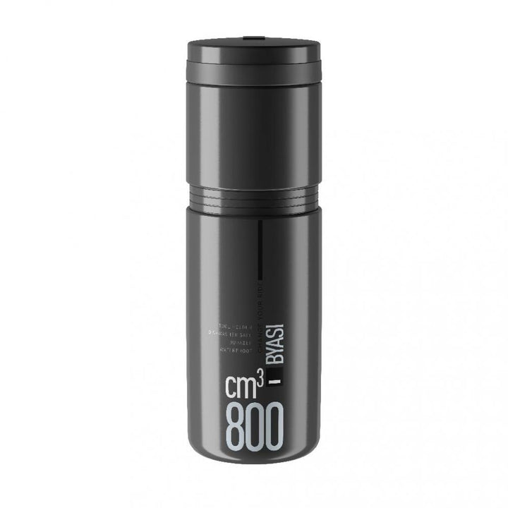 ELITE BYASI Werkzeugflasche 800 ml dunkelgrau: Wasserdichter Werkzeugbehälter in Trinkflaschenform, 74 mm Durchmesser, 82 g leicht, ideal für Straße, Schotter, MTB