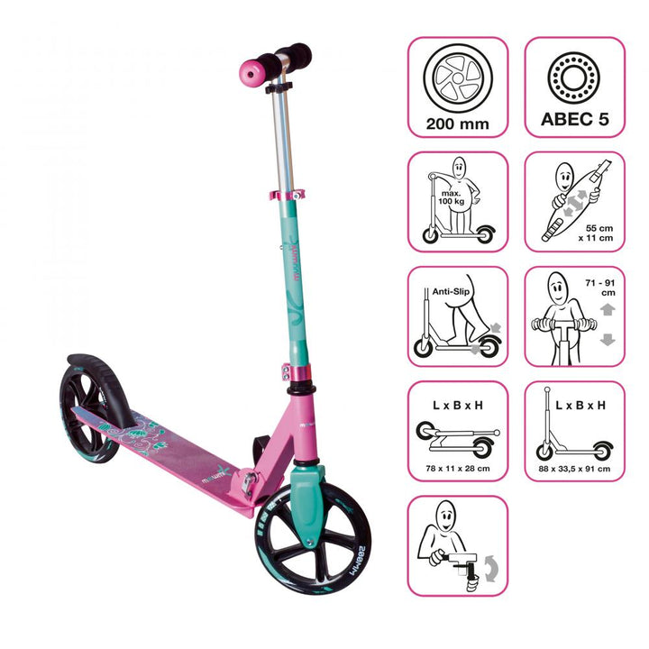 Muuwmi Aluminium Scooter pink türkis 200mm