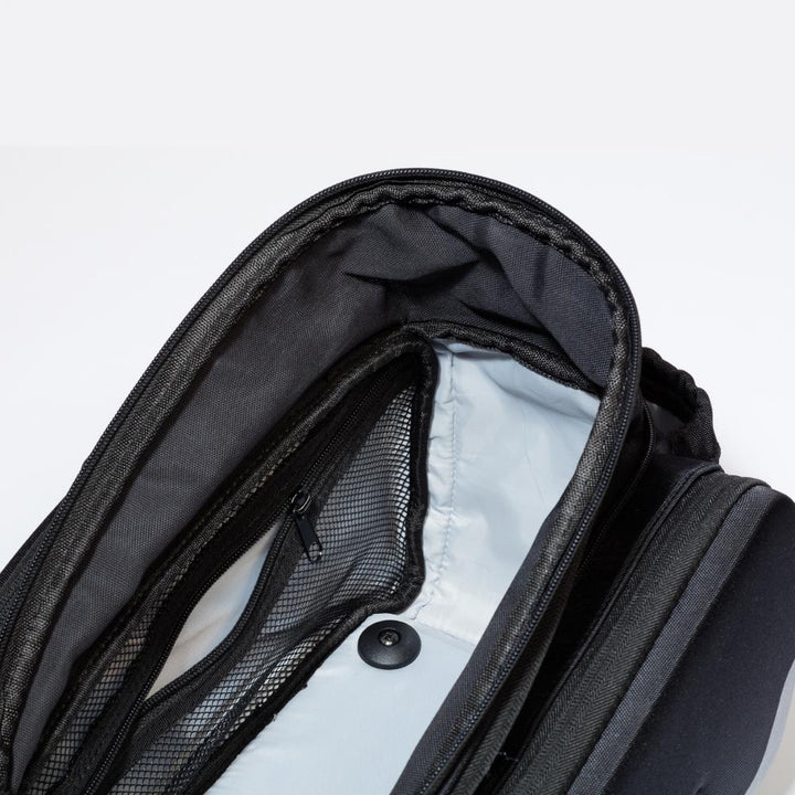 Erweiterbares Volumen: Das Hauptfach bietet ein Volumen von ca. 8 Litern, welches durch zwei ausklappbare seitliche Außentaschen um zusätzliche 11 Liter erweitert werden kann. Bitte beachten Sie, dass die maximale Zuladung der ausfaltbaren Seitentaschen 1 kg pro Seite beträgt.