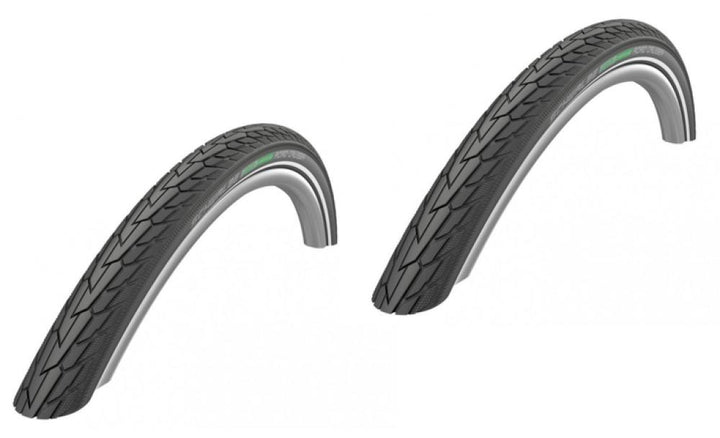 2 x Reifen Schwalbe Road Cruiser HS484 Green 28x1.60" 42-622 sw-TwinSkin Refl.KG GCUrban, individuell und dynamisch. Der Road Cruiser besticht durch sein gefälliges Profildesign und die zahlreichen Farbvarianten für Räder von 12“ bis 28“ Zoll. Das herausragende Merkmal des Road Cruiser steckt jedoch in der Lauffläche und heißt Green Compound. Ein Gummi, gefertigt mit Polymeren ausschließlich aus nachwachsenden und recycelten Rohstoffen, das so gut ist, dass wir es erstmalig in einem konventionellen Fahrradreifen einsetzen können.