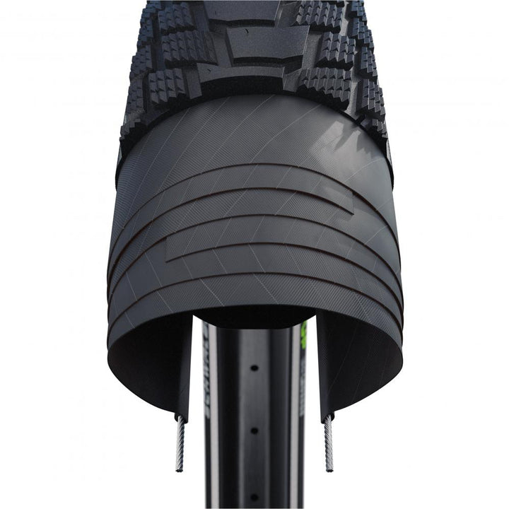 • ADDIX E Compound – Speziell für E-Bikes entwickelt, gewährleistet diese Gummimischung maximale Haltbarkeit, geringen Rollwiderstand und exzellenten Grip – auch bei hoher Geschwindigkeit.