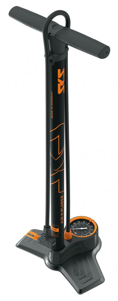 SKS AIR-X-PLORER 10.0 Standpumpe mit stabilem Metallfuß, großem Stahlrohr für Drücke bis 10 bar, extra langem Hochdruckschlauch und MULTI VALVE-Kopf für alle Ventilarten